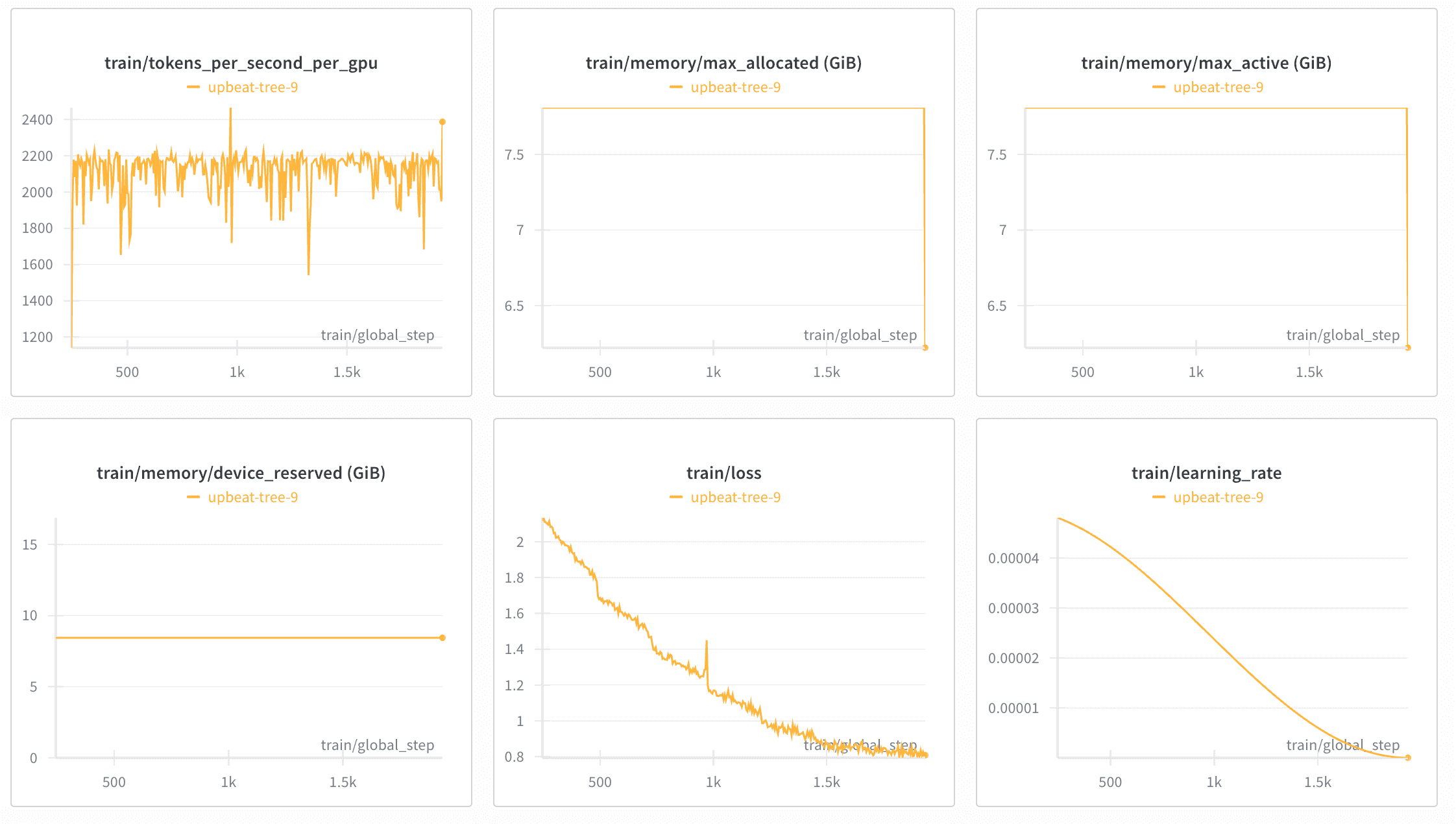 - Training Efficiency: 7.8 GiB VRAM, 2,180 tokens/sec (efficient use of resources)